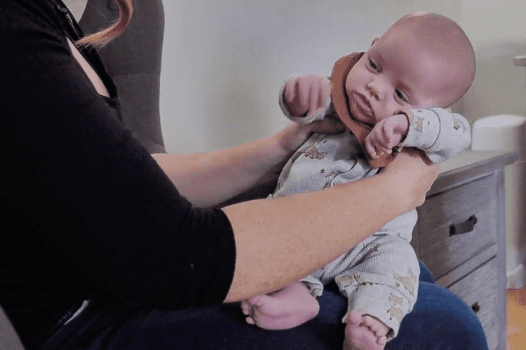 - Sit the baby up on your leg but without the movement